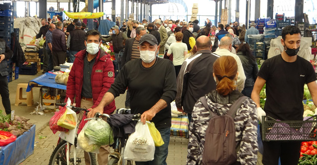 Çanakkale’nin, Türkiye genelinde yayınlanan korona virüs risk haritasında birinci sıraya çıkmasının ardından yeni kararlar alınmasına rağmen halk pazarında maske ve sosyal mesafe kuralı hiçe sayıldı. Sağlık Bakanı Fahrettin Koca tarafından yayınlanan ‘İllere Göre Haftalık Vaka Sayısı’ tablosunda 100 bin kişide görülen vaka sayısının bir haftada 797,34’ten 962,928’e yükselen Çanakkale, bu artış hızıyla Türkiye birinciliğine yükseldi. Çanakkale'de vaka sayıları, 8 Şubat'tan 16 Nisan’a kadar geçen süreçte vaka sayıları 26 kat arttı. Korkutan artışlar sonrası Çanakkale Valisi İlhami Aktaş öncülüğünde toplanan İl Umumi Hıfzıssıhha Kurulu, yeni ek tedbir kararları aldı. İçişleri Bakanlığı tarafından dün akşam saatlerinde gönderilen 23 Nisan Sokağa Çıkma Kısıtlaması konulu genelgede, 23 Nisan Ulusal Egemenlik ve Çocuk Bayramı'nın resmi tatil olması dolayısıyla sokağa çıkma kısıtlaması, bugün saat 19.00 itibarıyla başlayacak ve Pazartesi günü saat 05.00’te sonra erecek. Normalde yarın kurulması gereken halk pazarı 3 günlük sokağa çıkma kısıtlamasının ardından bugün kuruldu. Haberi duyan vatandaşlar soluğu halk pazarında alındı. Maske, mesafe ve hijyen kurallarının hiçe sayıldığı pazardaki görüntüyü görenler tedirginliklerini gizleyemedi.